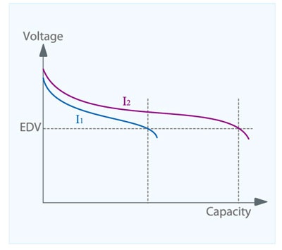 电池芯容量通常是以放电电流及时间两个条件积分而成,故测试 容量时的放电电流将影响最后容量的测量,每颗电池虽有制造商 标示之规格,在其常用低充放电率来进行容量测试,但动力电池 应用经常在高于高充放电率状态下在进行充电与放电,若仅参考 规格来设定电力电池的容量将与实际容量有落差。在实务上需参 考最终动力电池之充放电速率来针对其电池芯进行测试,将可得 到较准确的动力电池容量。