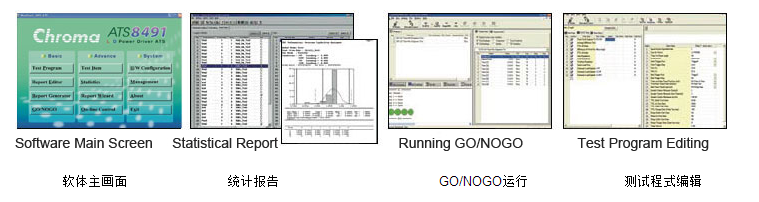Chroma 8491 自动测试系统软体运行于Windows98/2000/NT/XP 环境下,在简单易学的Windows环境下为测试工程师提供专用的电源测试系统,并且方便使用Windows资源。